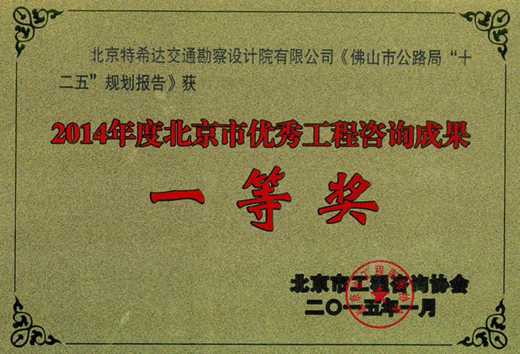 公路行業(yè)(公路)專(zhuān)業(yè)甲級(jí);市政行業(yè)(給水工程、道路工程、橋梁工程、城市隧道工程)專(zhuān)業(yè)甲級(jí)