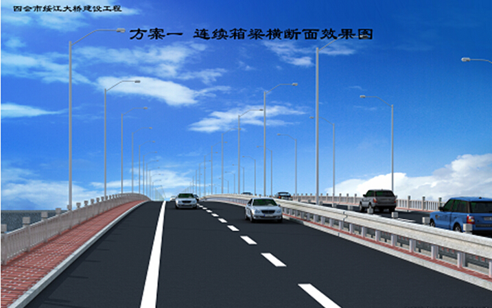 四會(huì)市綏江大橋位于S260線上,是四會(huì)、廣寧、懷集、清遠(yuǎn)等通往肇慶市的重要通道。綏江大橋建設(shè)工程在現(xiàn)況綏江大橋下游新建單幅新橋,新橋與舊橋之間留空0.5m,新橋建成后與舊橋形成雙向四車道上下行分離式橋梁,橋跨布置為(20+31+4×50.6m+31+20)m連續(xù)箱梁+25m(簡(jiǎn)支箱梁)=329.4m,橋面寬度13.75m。改造路線長(zhǎng)990m,其中橋梁長(zhǎng)340.37m,橋梁引道649.63m,設(shè)計(jì)為雙向四車道城市主干路,設(shè)計(jì)速度60km/h,路基全寬28米,項(xiàng)目總投資約為8000萬元。